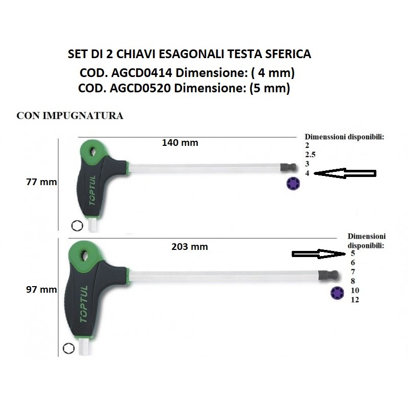 SET DI 2 CHIAVI ESAGONALI TESTA SFERICA CON IMPUGNATURA