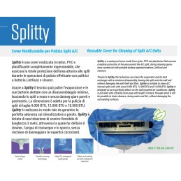 Splitty è una cover realizzata in nylon, PVC e plastificante completamente impermeabile, che assicura la totale protezione dell’area attorno allo split durante le operazioni di pulizia effettuate con pulitrici a batteria.