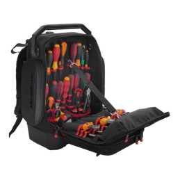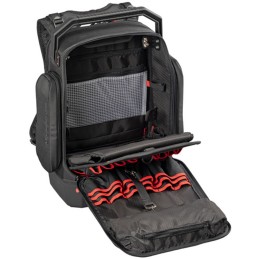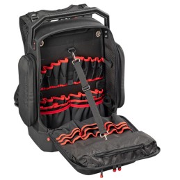 Studiato per tecnici, manutentori e installatori, questo zaino porta attrezzi è progettato per il trasporto sicuro e organizzato di utensili, accessori, documenti e notebook fino a 17”.