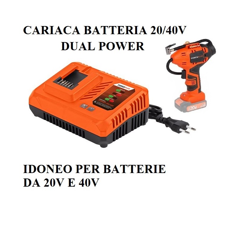 Il caricabatterie POWDP9051 è progettato per le batterie Dual Power da 20V e 40V La ricarica della batteria 40V richiede 2 - 2,5 ore,