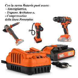 SMERIGLIATRICE ANGOLARE POWERPLUS POWDP35155 20V 2Ah 115mm CON BATTERIA E CARICA BATTERIA SI POSSONO ORDINARE ANCHE BATTERIE DA 3 E 4 Ah