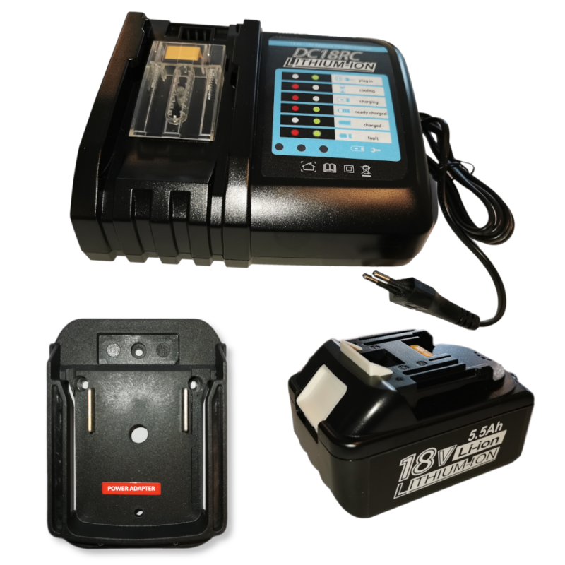 KIT BATTERIA 18V 5,5A + CARICA BATTERIA ED ADATTATORE